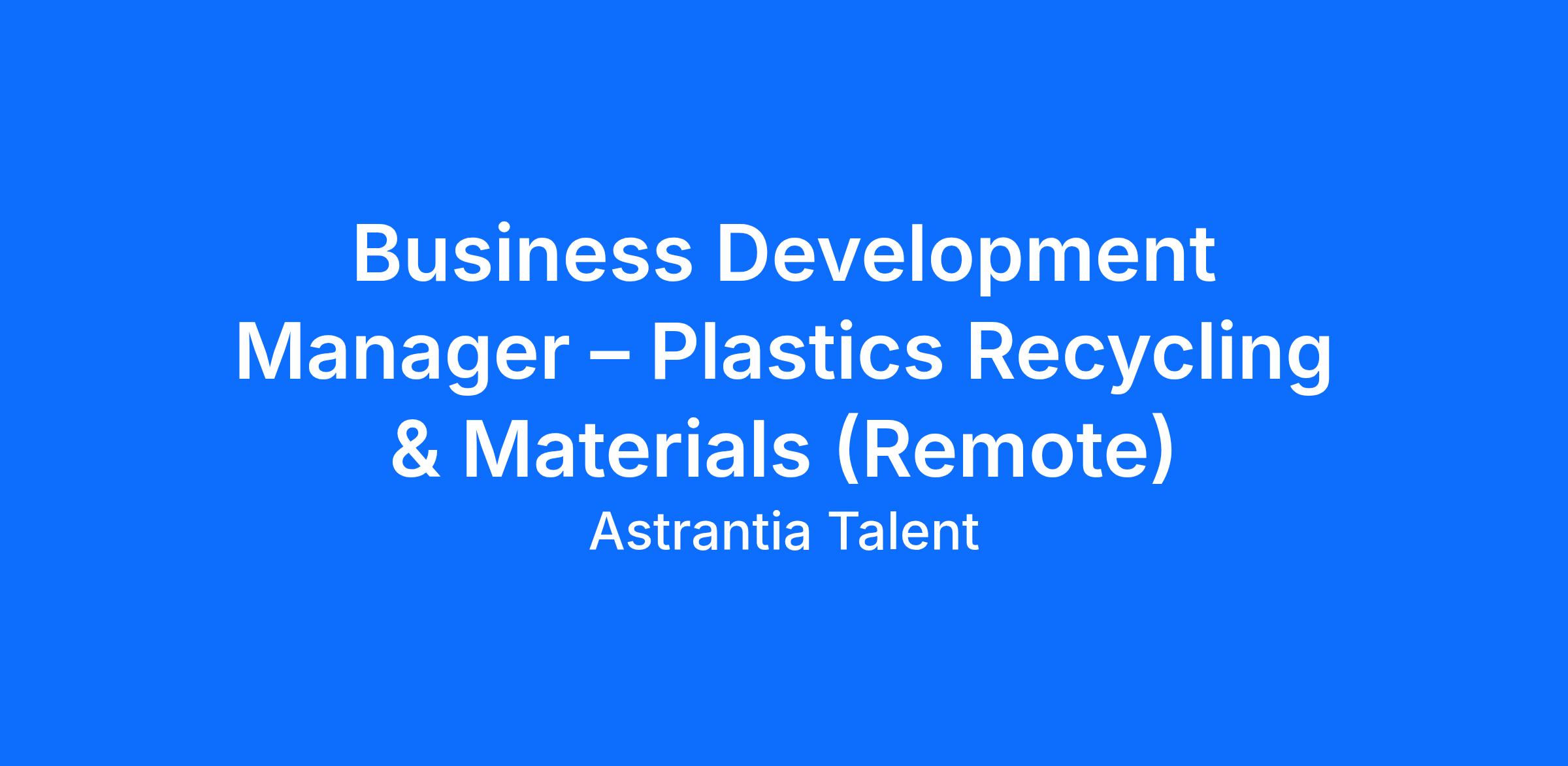 Business Development Manager – Plastics Recycling & Materials (Remote)