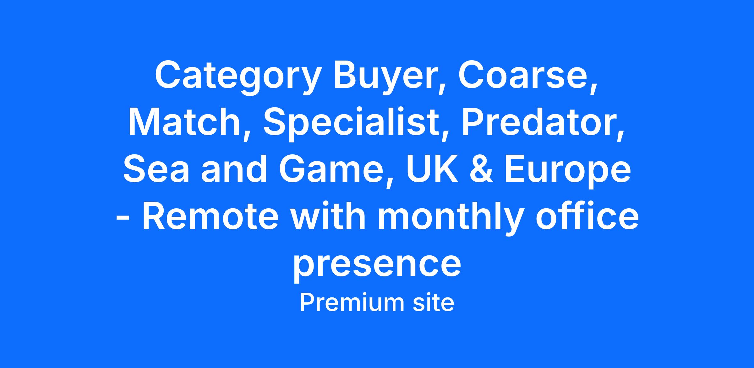 We have ambitious plans with continued new store openings and online expansion and require an experienced Category buyer who can hit the ground running, developing and executing Category growth plans predominantly for the Coarse but also match, specialist, predator, sea and game categories.