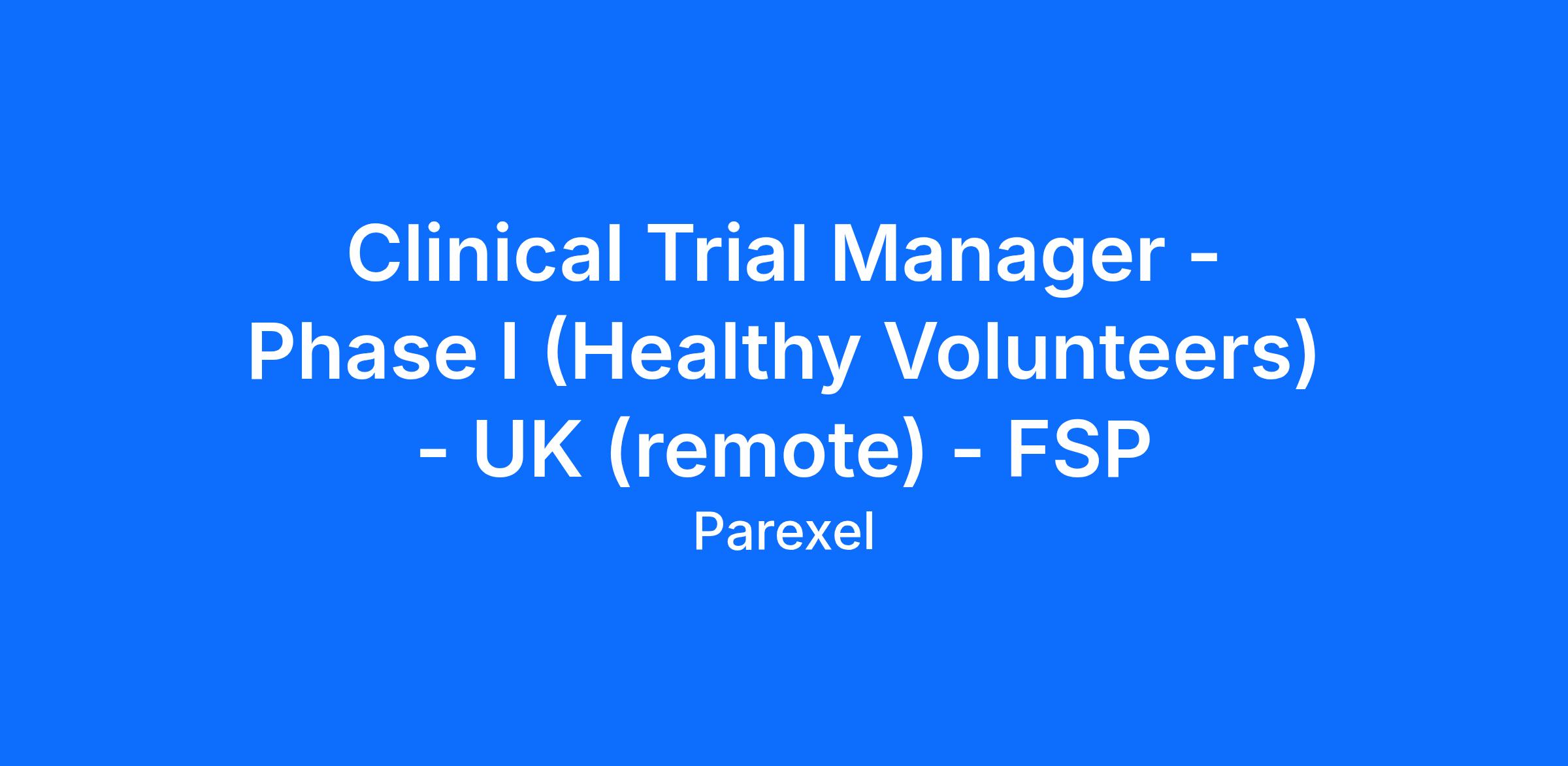 Parexel is currently seeking a Clinical Trial Manager (CTM) to join us in the UK, dedicated to a single sponsor. This role will focus on Phase I Healthy Volunteers trials.