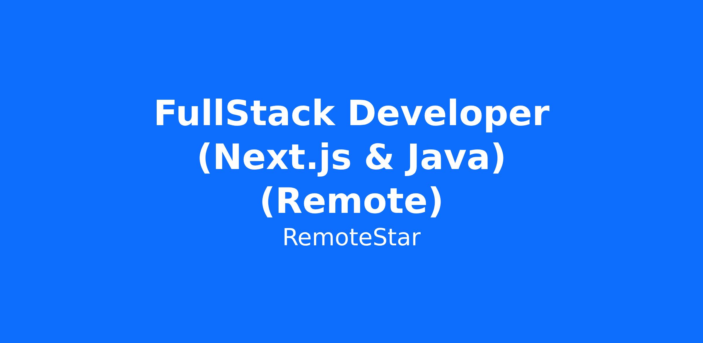 FullStack Developer (Next.js & Java) (Remote)