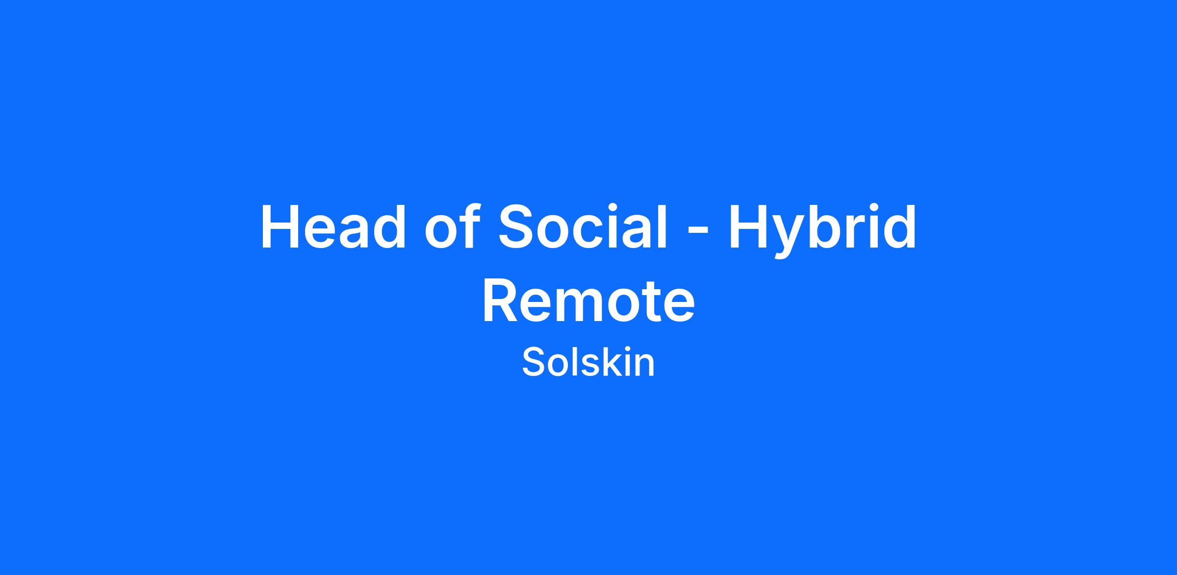 We’re looking for a high-performing Social Lead to take SOLSKIN to the next level at a critical stage of growth.