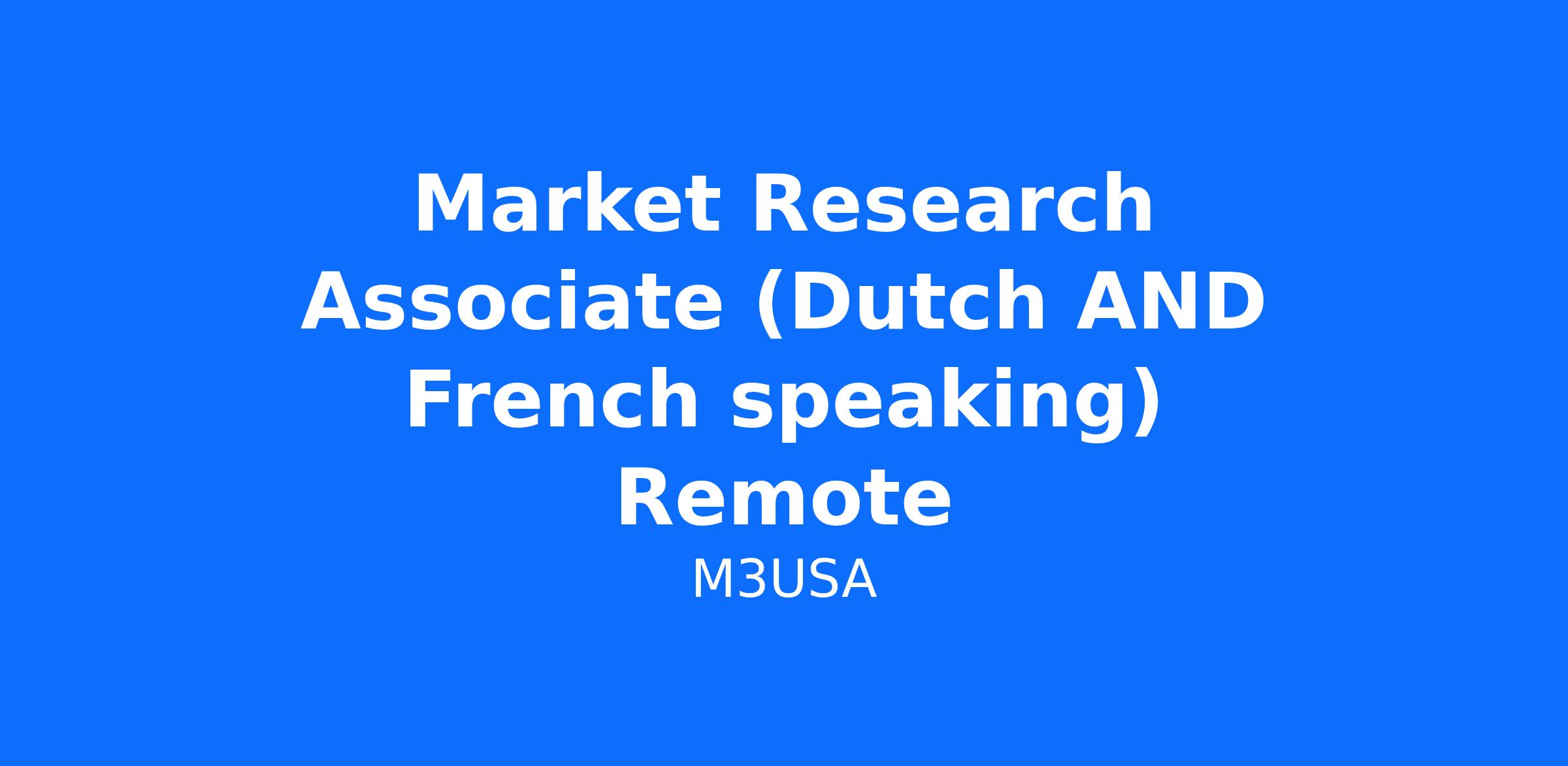 Market Research Associate (Dutch AND French speaking) Remote