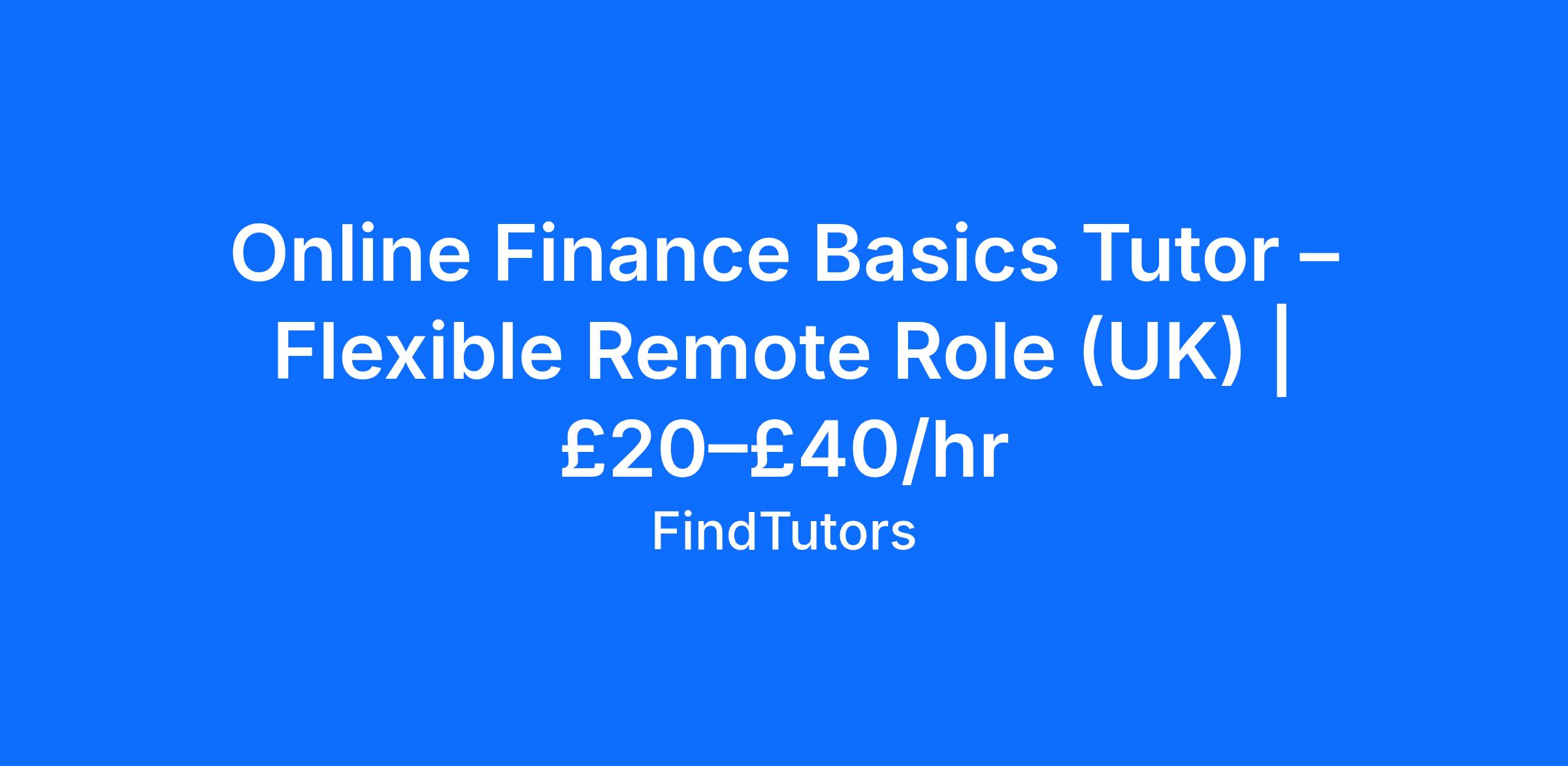 Are you fascinated by how money, markets, and personal finance work? Join FindTutors as a Finance Basics Tutor and help students develop essential financial literacy skills that will benefit them throughout their lives.