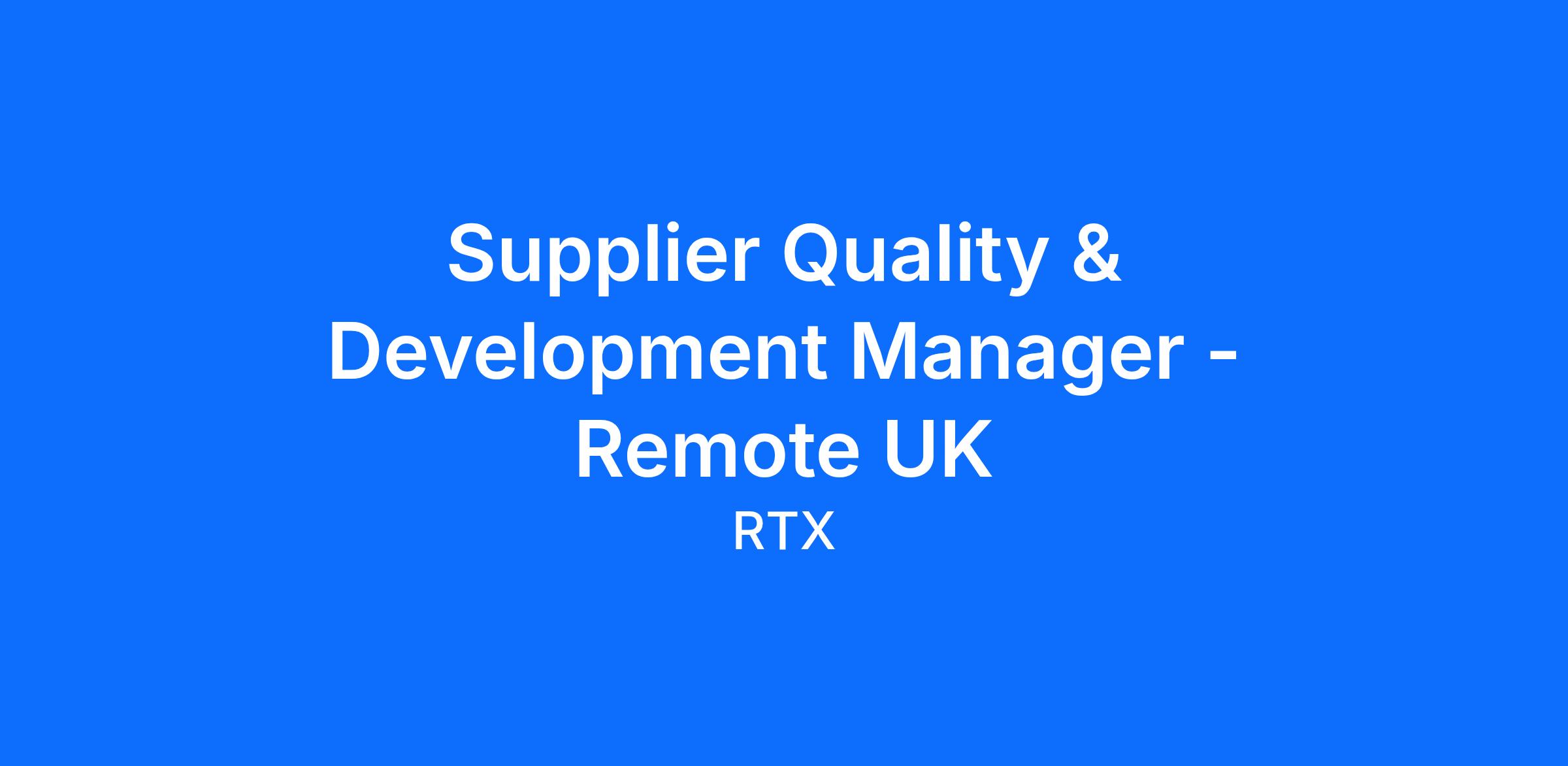 We have an interesting and exciting opportunity to join our Commodities business. The Supplier Quality & Development Manager ensures that the quality of RTX suppliers, products and processes are compliant with internal and regulatory standards and are continuously improving.