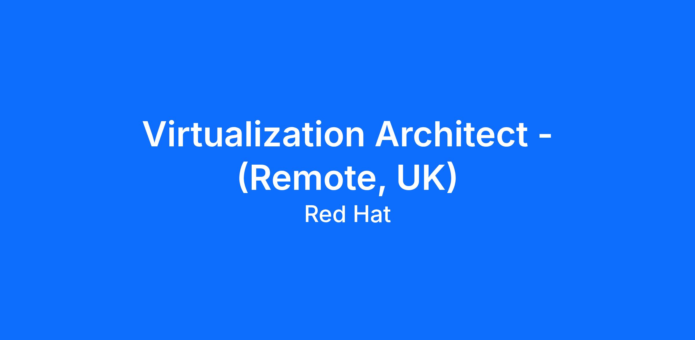 Red Hat Consulting is seeking a Virtualization Architect specialized in migration projects to join our EMEA delivery team. The primary responsibility of the Red Hat Virtualization Architect is to passionately drive the adoption of Red Hat's virtualization solutions in our key customers.